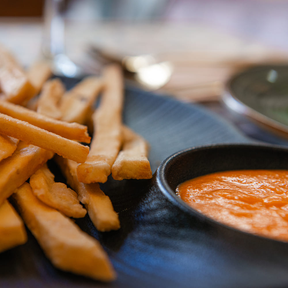 Patatas* acompañadas de nuestra salsa picante casera. Para los más valientes, la extra picante "BALOTELLI".